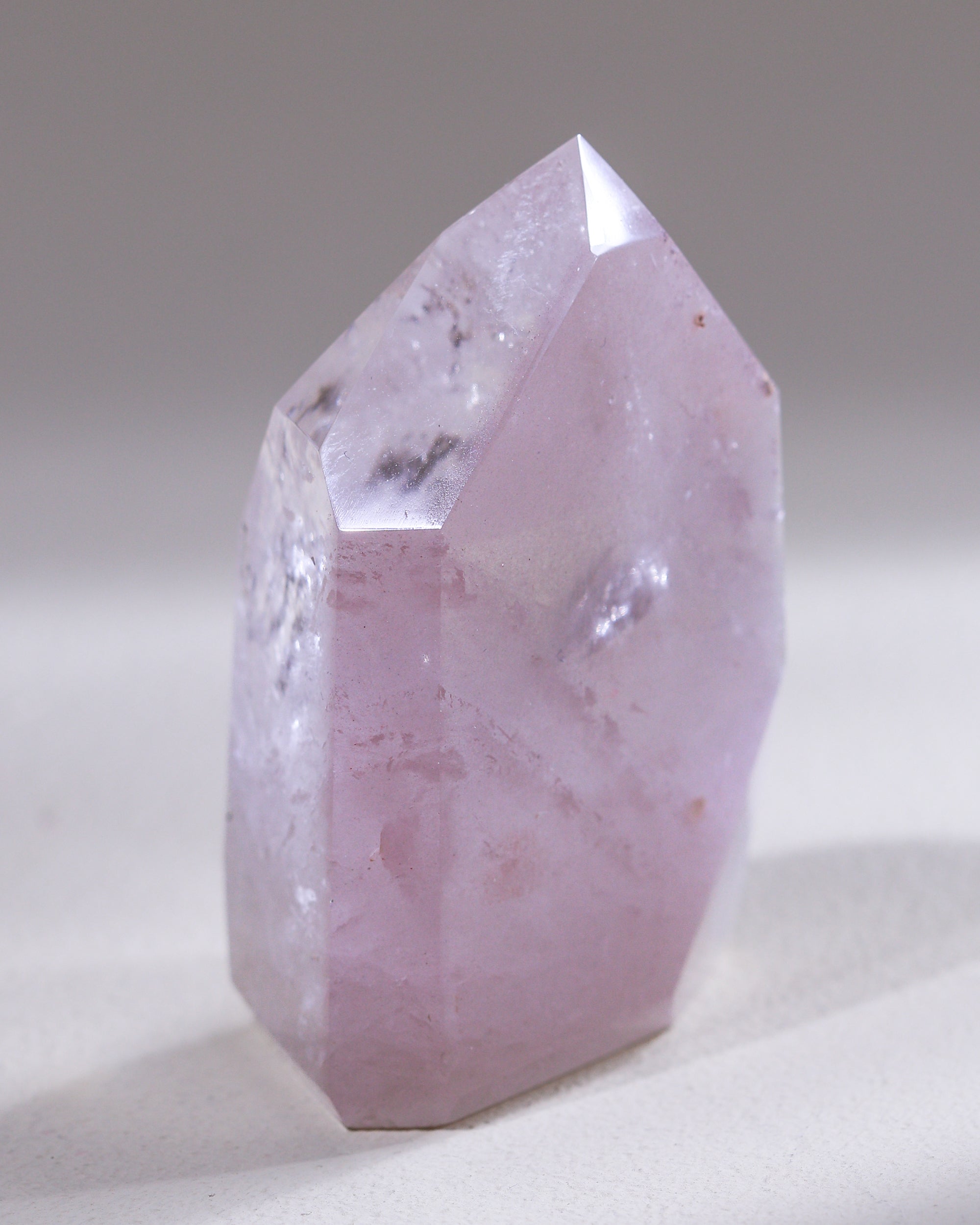 Dieser pinke bis magentafarbene Quarz ist ein seltenes und wertvolles Fundstück unter den Inklusionsquarzen. Im klaren Bergkristall zeigen sich rosafarbene Phantome, die wunderschöne geometrische Muster zeichnen. Neueste Laboruntersuchungen legen nahe, dass es sich bei der pinken Farbe in diesen Kristallen weniger um Lithium handelt, sondern hauptsächlich um Hämatit-Inklusionen. Besonders beliebt ist dieser Kristall für seine energetischen Eigenschaften: Er schenkt Seelenfrieden und innere Ruhe, er balanciert den Kopf und das Herz.